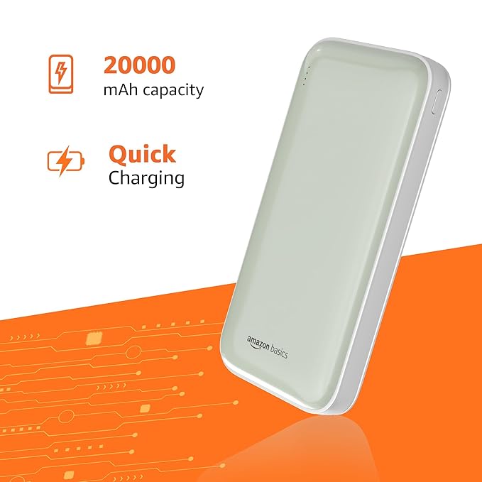 amazon basics 20000 Mah 22.5 W Ultra Fast Charging Power Bank | USB Type-C Input (Input & Output) | Quick Charge | Two-Way Fast Charging (Lime)