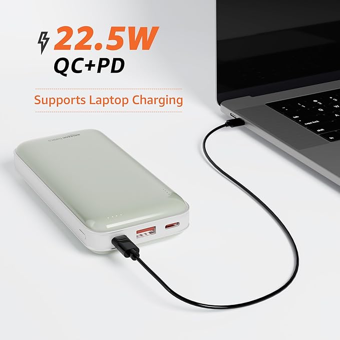 - Rapid Charging: Empowered with 22.5W charging power, the power bank swiftly charges laptops, smartphones, TWS earbuds, speakers, and more.