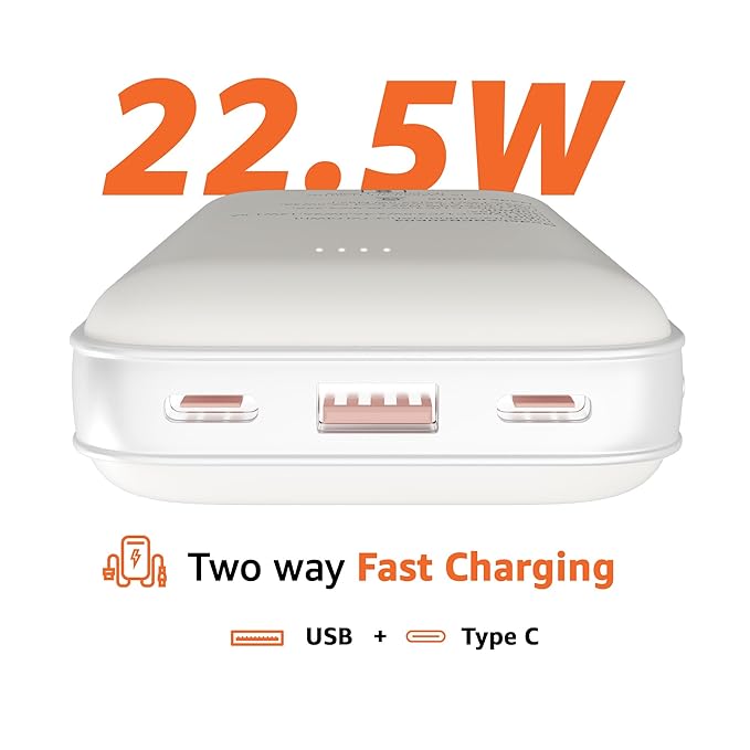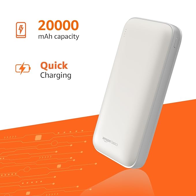 Amazon Basics 20000 mAh 22.5W Ultra Fast Charging Power Bank | Type C Power Delivery (Input & Output) | Quick Charge | Two-Way Fast Charging (White)