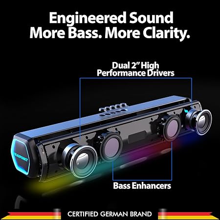 - Improve TV Sound: This 25W soundbar can perfectly amplify the sound output of a PC/Phone/Monitors without taking up limited desktop space. Blaupunkt SBA25 Gaming is a must-have device to accompany today’s modern TVs, brings best leisure experienceImprove TV Sound: This 25W soundbar can perfectly amplify the sound output of a PC/Phone/Monitors without taking up limited desktop space. Blaupunkt SBA25 Gaming is a must-have device to accompany today’s modern TVs, brings best leisure experience