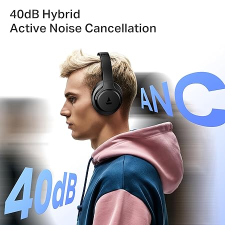 - 40dB Hybrid ANC: Dive into sound with the boAt Rockerz 512 ANC Bluetooth Headphones. Advanced hybrid Active Noise Cancellation technology effectively reduces ambient sound by up to 40dB, letting you relax in a world of undisturbed audio.