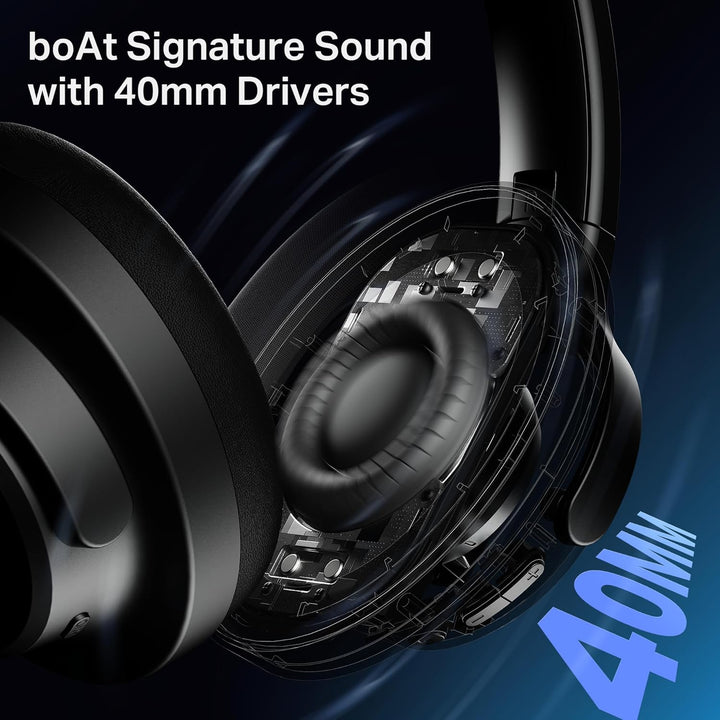 - 40mm Drivers: Experience dynamic sound with powerful 40mm drivers. From cinematic soundtracks to high-energy beats, the bass-heavy boAt Signature Sound ensures every moment hits hard.