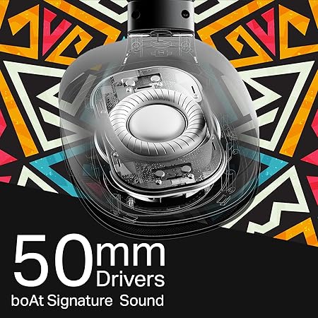 - 50mm Drivers: Feel every beat with powerful 50mm drivers that pump out punchy audio. boAt Signature Sound brings rich bass and vibrant clarity to elevate music, movies, and more.