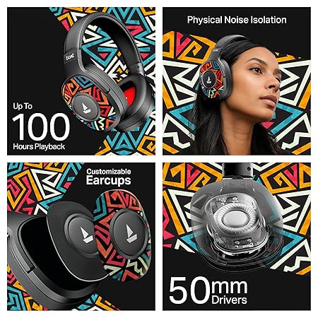 - Customizable Earcups: Match your vibe every day with the boAt Rockerz Plus 550 Bluetooth Headphones, featuring customizable earcups. Effortlessly change the design and flaunt your unique style while enjoying your favorite tracks in comfort.