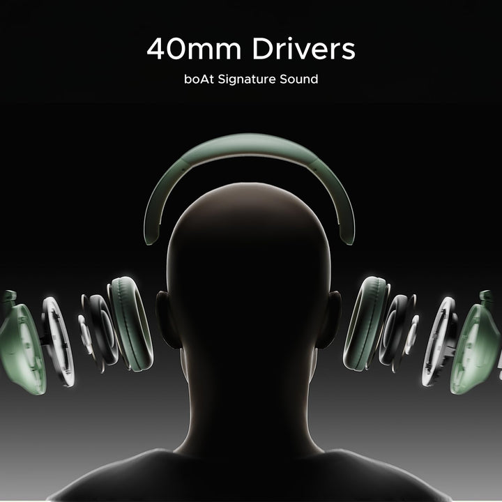 - 40mm Drivers: Listen to thumping audio with the 40mm drivers in these headphones. Bass-rich boAt Signature Sound from the dual drivers is bound to amplify your listening experience to the next level.