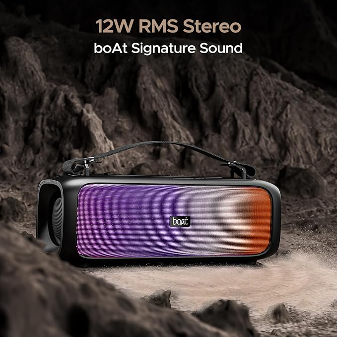 boAt Stone 580 Bluetooth Speaker with 12W RMS Stereo Sound, LED Lights, Up to 8 HRS Playtime (2 color options)