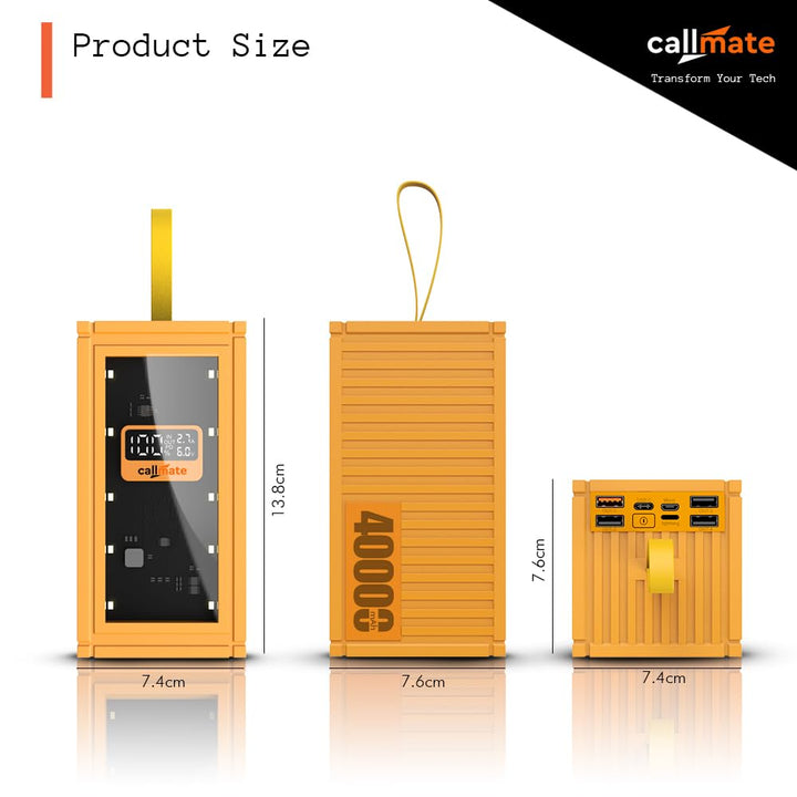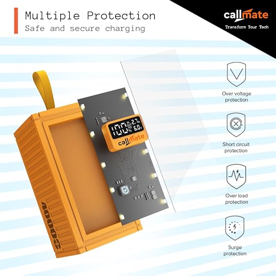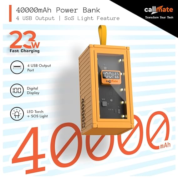 Callmate Ultrafuse Max 40000mAh Ultra High Capacity Power Bank, 23 W Fast Charging |Digital Display |4 USB Output Ports and 3 Input |LED Light with SOS| for Smartphones and Other Devices