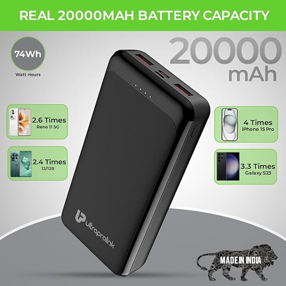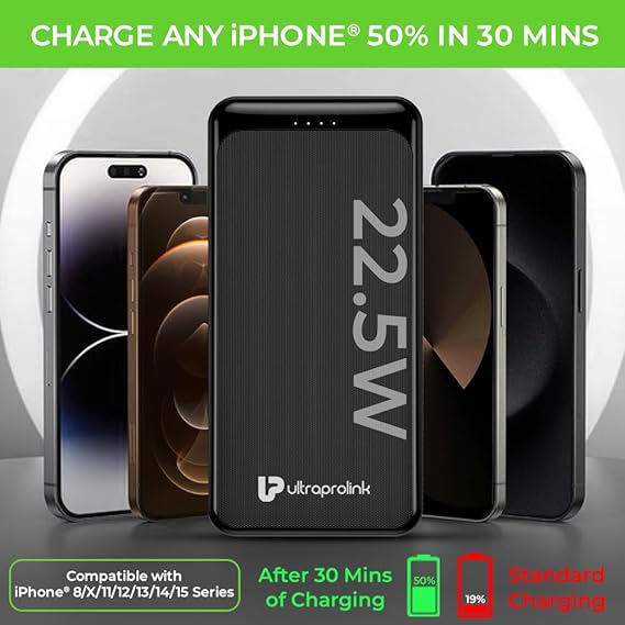 UltraProlink Power Bank 20000mah Slim Compact |22.5W QC-PD -PPS|Juice-Up Pronto+ |for iPhone 15/14,iPad,Galaxy, Nothing & Pixel Phones|Charge Any iPhone up to 50% in 30 Minutes|Made in India|UM1116