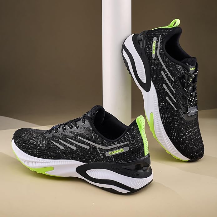 Campus Men Camp-Spunky Running Shoes (BLK/F.GRN)