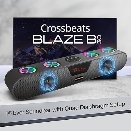 CrossBeats Blaze B30 (2025) Bluetooth 30W Soundbar Gaming RGB Light, AUX, BT, SD Card, USB &FM, 8 Hrs Playtime (Black)