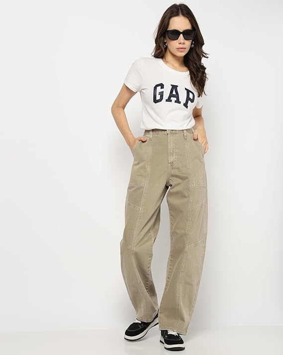 GAP Women’s Relaxed Fit High Rise Dyed Barrel Jeans (Brown)