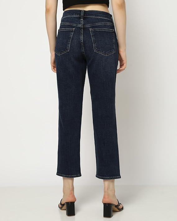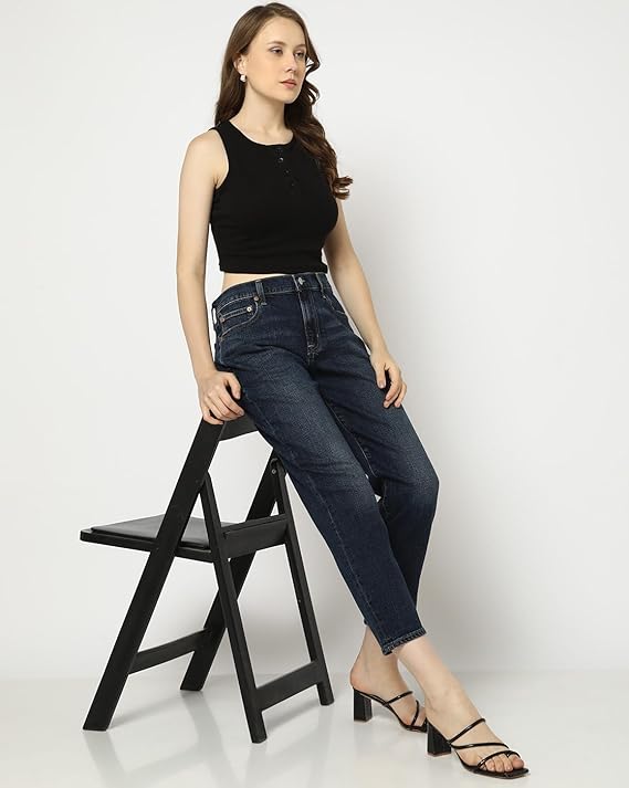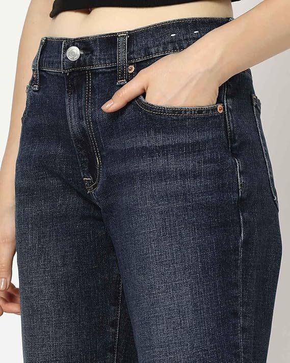 GAP Women’s Relaxed Fit Mid Rise Mid Washed Jeans (Dark Blue)