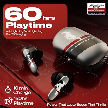 GOBOULT Mustang Dyno Wireless in Ear Earbuds with 60H Playtime, App Support, Dual Pairing, 4 Mics ENC, 45ms Low Latency, 13mm Drivers, Touch Controls, Made in India, IPX5, TWS Ear buds Wireless (Grey)