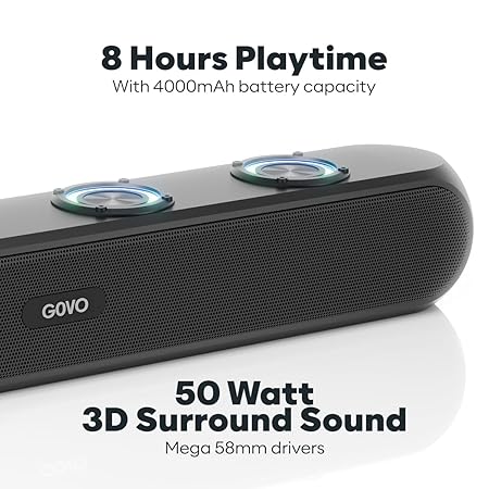 - Immersive 3D Surround Sound: The G0VO Gosurround 320 portable speaker, powered by 58mm drivers, delivers a potent 50-watt output, providing a cinematic audio experience at home. Perfect for gaming marathons, movie nights, and everyday music listening