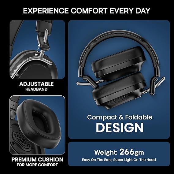 - Bluetooth Headphones with Advanced Features: Experience superior sound quality with 40mm drivers in these headphones bluetooth. Boasting Hybrid ANC for uninterrupted listening, they offer a quick charge capability ensuring 300 min playtime from just a 10-minute charge