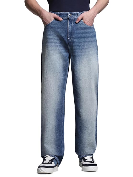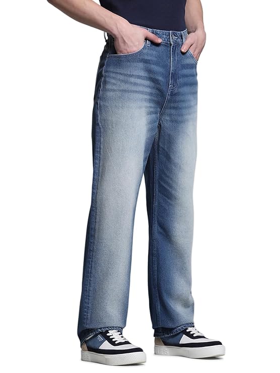 JACK & JONES Men's Mid Rise Loose Jeans (Light Blue)