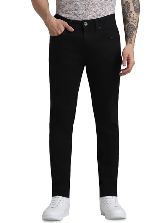 JACK & JONES Men's Regular Fit Mid Rise Jeans (Black)