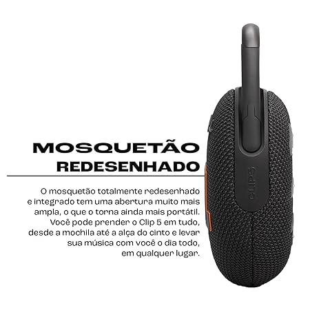 - Redesigned carabiner :The completely redesigned, fully integrated carabiner has a much wider opening that makes it even more portable. You can attach the Clip 5 to everything from your backpack to your belt loop, and take your music with you all day, everywhere