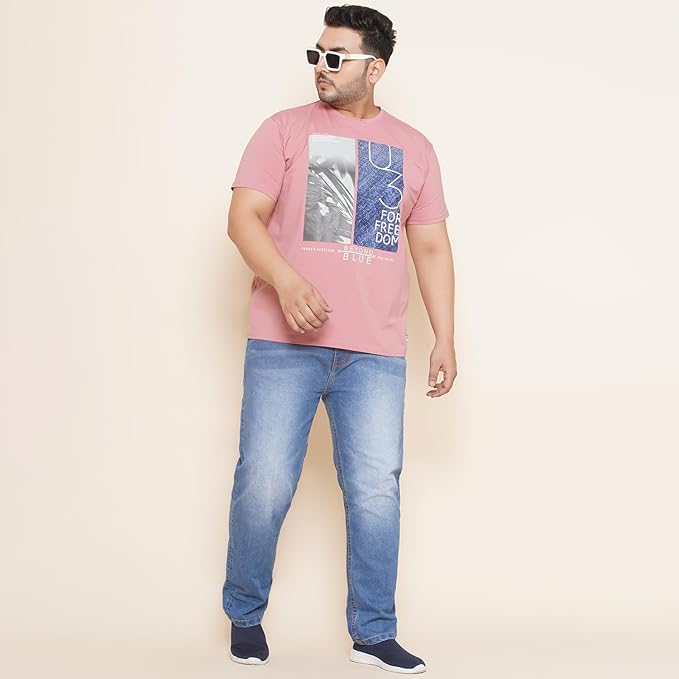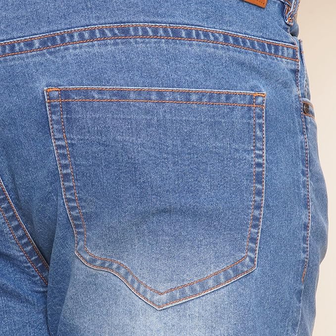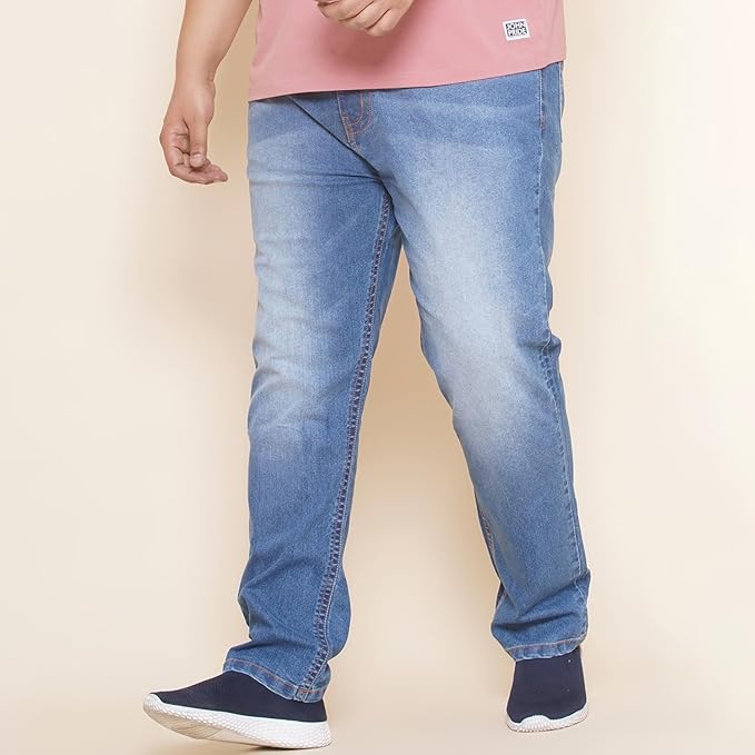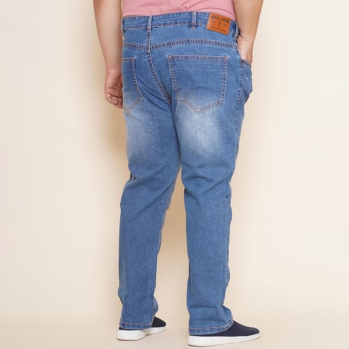 JOHN PRIDE Plus Size Men's Stretchable Mid-Rise Comfort Fit Clean Look Blue Cotton Jeans for Men (Blue)