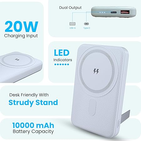 JUICE OJP1001-10000 mAh Magnetic 15W Wireless Output Magsafe Power Bank | 22.5 Wired Output Compatible with iPhone 12 & Above | Type-C Input/Output (White)…