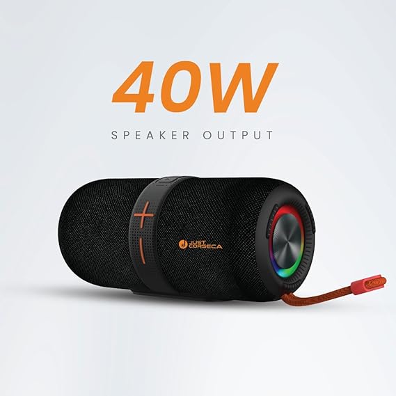 JUST CORSECA Sushi Boomer 40W Bluetooth Speaker | Dual 66mm Drivers | BT v5.3 | 3000mAh, 12H Playtime | IPX4 Splash Proof (Black)