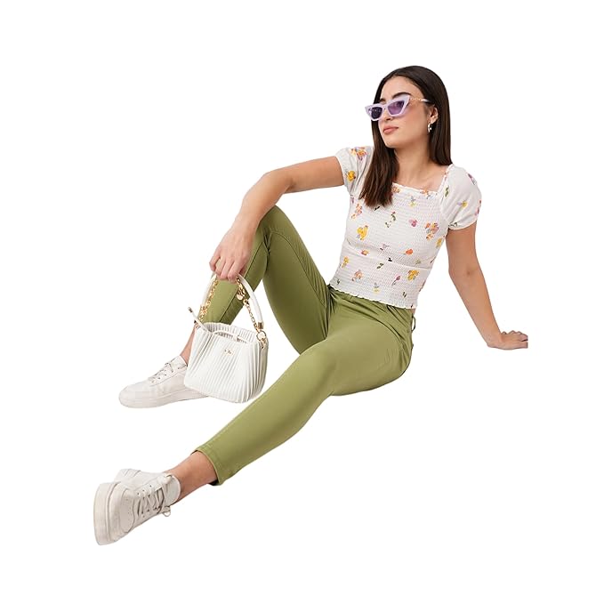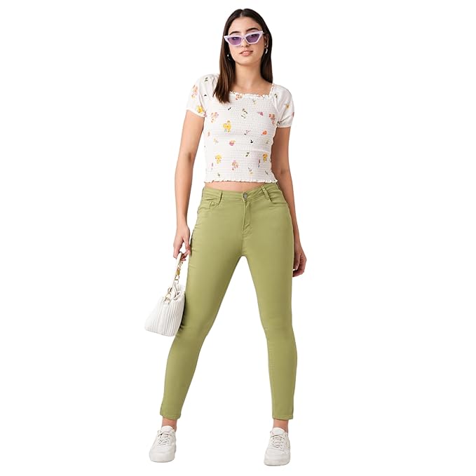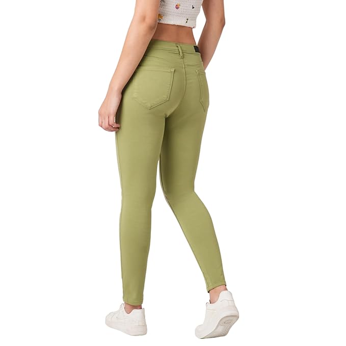 KRAUS JEANS Women's Cotton Blend Skinny Fit High-Rise Ankle Length Jeans (GREEN)