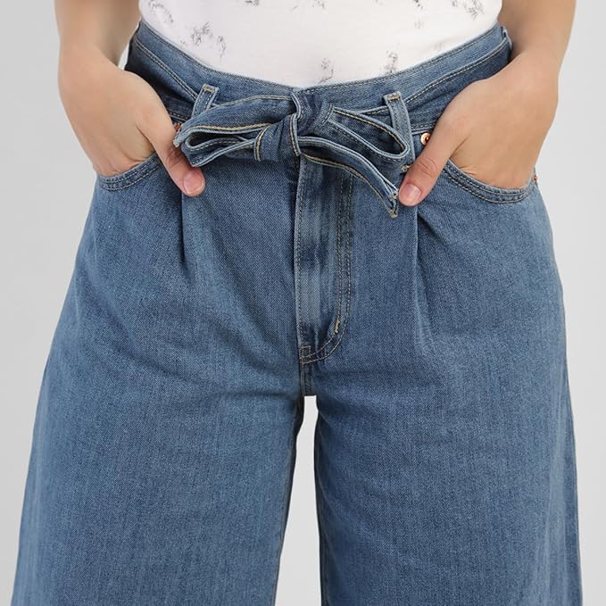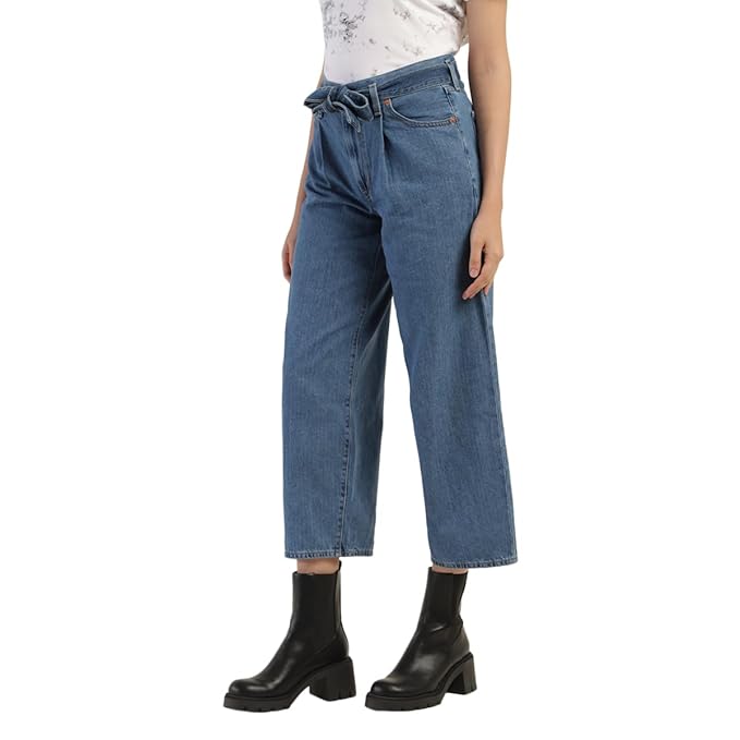 Levi's Women's Mid Rise Belted Baggy Loose Straight Fit Jeans (Blue)