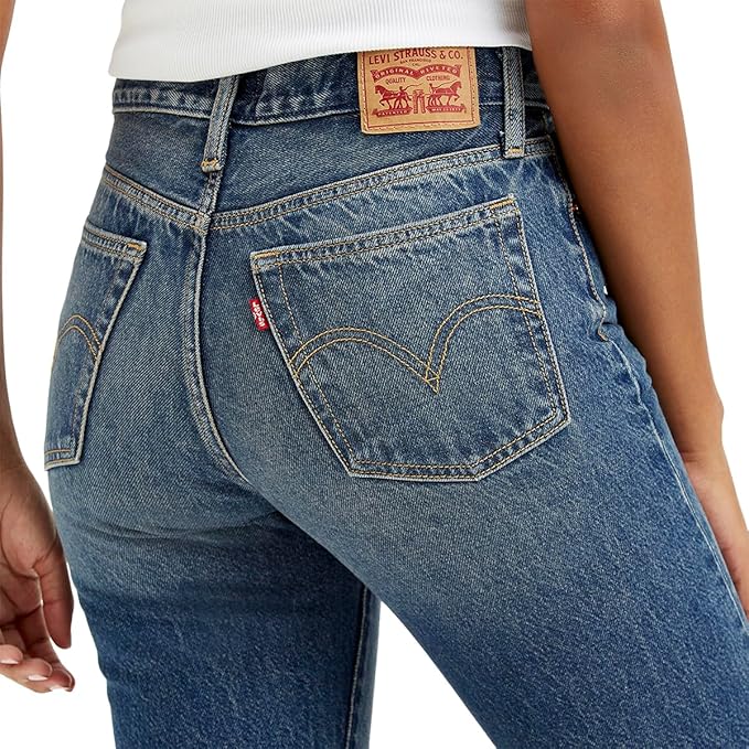 - Women's Mid Rise Wedgie Straight Fit Blue Jeans
