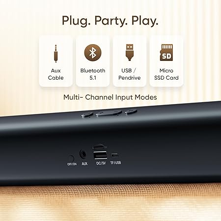 - Connect the soundbar seamlessly via input modes. The soundbar offers 3 unique options to choose from including, USB, AUX, and Micro SD. It also comes with Bluetooth v5.1 for seamless wireless connectivity.