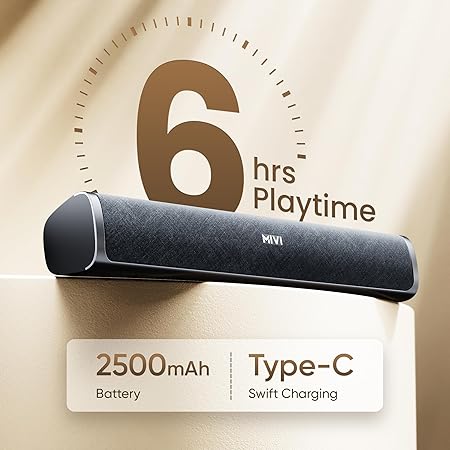 - Mivi Fort Q26 soundbar comes with a 2500mAh battery offering you up to 6 hours of playtime of a single charge. Enjoy absolute sound clarity on the go.
