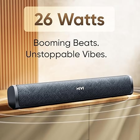 Mivi Fort Q26 Soundbar [Newly Launched] with 26W Powerful Audio, 2.0 Channel with Dual Full-Range Speakers, Multiple Input Modes, 6H Playtime, 2500mAh Battery (Black)