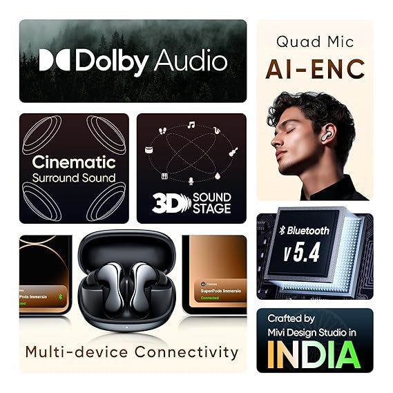 Mivi SuperPods Immersio[Flagship Launch] | Dolby Audio, 3D Soundstage, 60H Battery, AI-ENC Mic, BT 5.4 | Ear Buds Wireless with Deep Bass, Fast Charging, in-Ear Bluetooth Earbuds