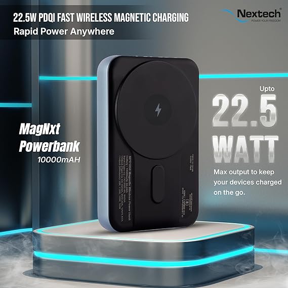Nextech MagNxt | 10,000mAh Magsafe Power Bank | Fast Charging | Type-C PD | 22.5W Output | 15W Magnetic Charging | LED Display | Compact & Slim | Power Bank for All Smartphones | Metallic Blue
