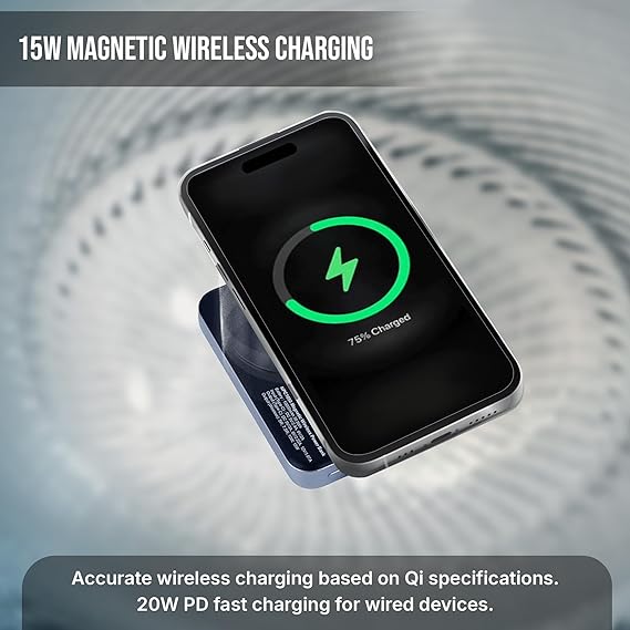 - MagSafe Wireless Charging: Wireless Powerbank Mini 10K supports 15W Magsafe (wireless) charging for QI-enabled devices (iPhone- 12 and above, Samsung S series, etc).22.5W Smallest Power Bank: This smallest 10,000mAh Lithium Polymer battery power bank delivers a rapid 22.5W maximum output, guaranteeing you'll never run out of battery again. Stay charged on the go!