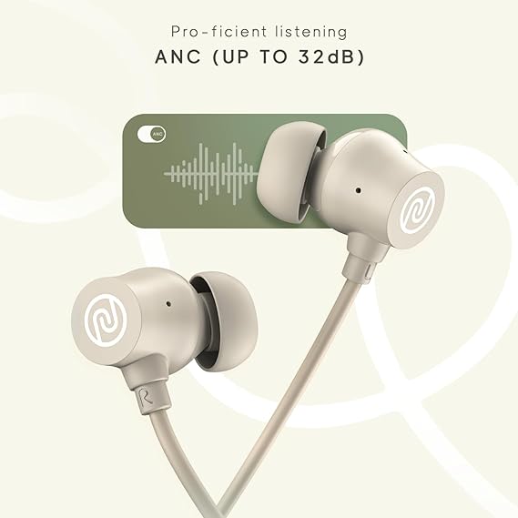 Noise Airwave Pro Bluetooth in Ear Neckband with Upto 32 dB ANC, 60H of Playtime, Dual Device Pairing, 3 Mic ENC for Calling, Low Latency(Upto 40ms), 13mm Driver (Metallic Beige)
