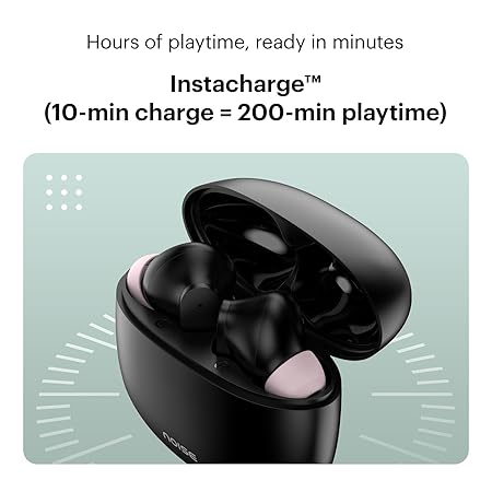 Noise Buds VS104 Truly Wireless in Earbuds with 45H of Playtime, Quad Mic with ENC, Instacharge(10 Min=200 Min), 13Mm Driver,Low Latency, BT V5.2 (Charcoal Black)