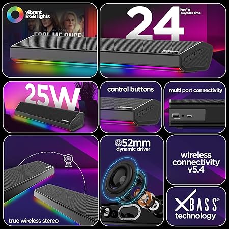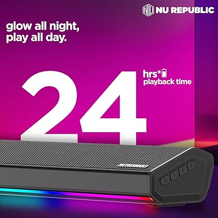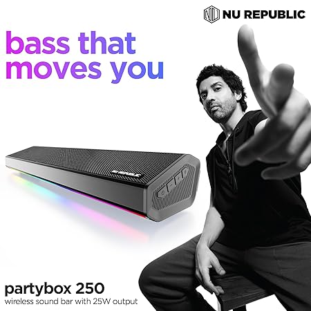Nu Republic Partybox 250 with 25W Output, Upto 24 Hrs Playtime, 52mm Dynamic Driver, Vibrant RGB Light Bluetooth Soundbar (Black)