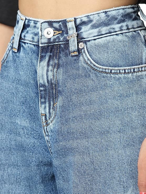 ONLY Women Straight Fit High-Rise Clean Look Light Fade Pure Cotton Jeans (Medium Blue Denim)