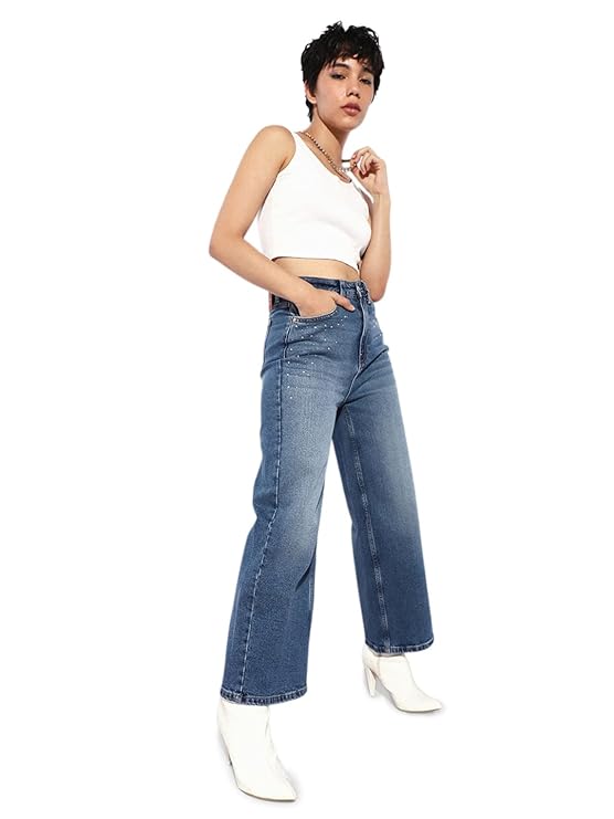 ONLY Women's Loose Jeans (Medium Blue Denim)