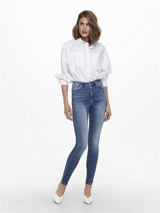 ONLY Women's Mid Rise Skinny Jeans (Medium Blue Denim)