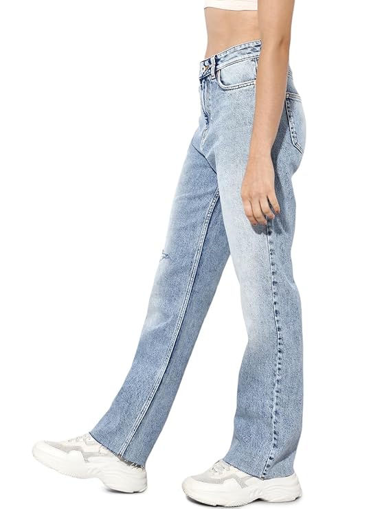 ONLY Women's Straight Jeans (Light Blue Denim)