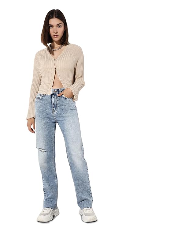 ONLY Women's Straight Jeans (Light Blue Denim)