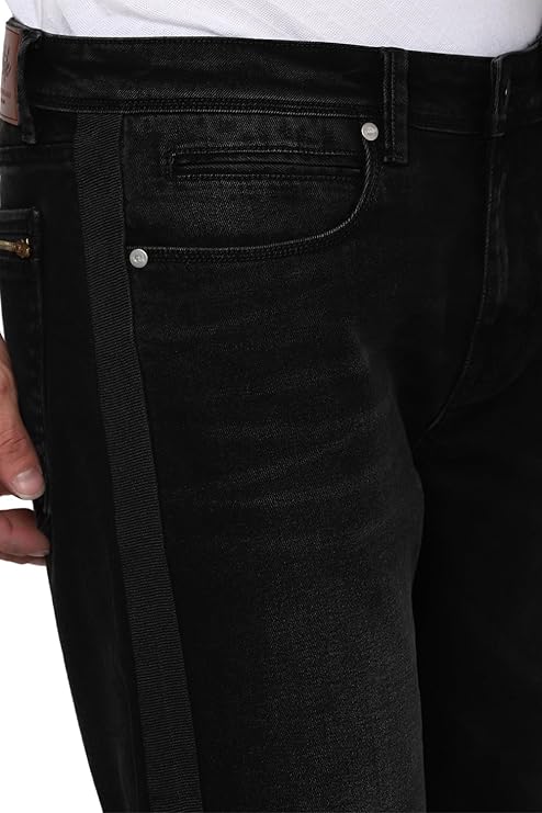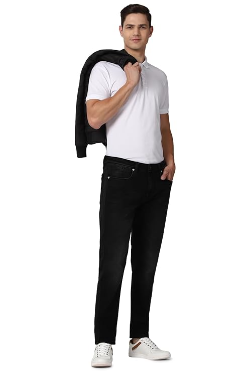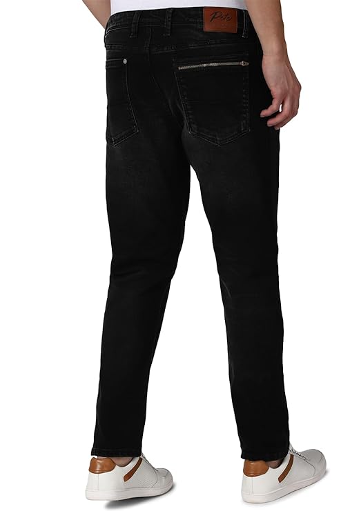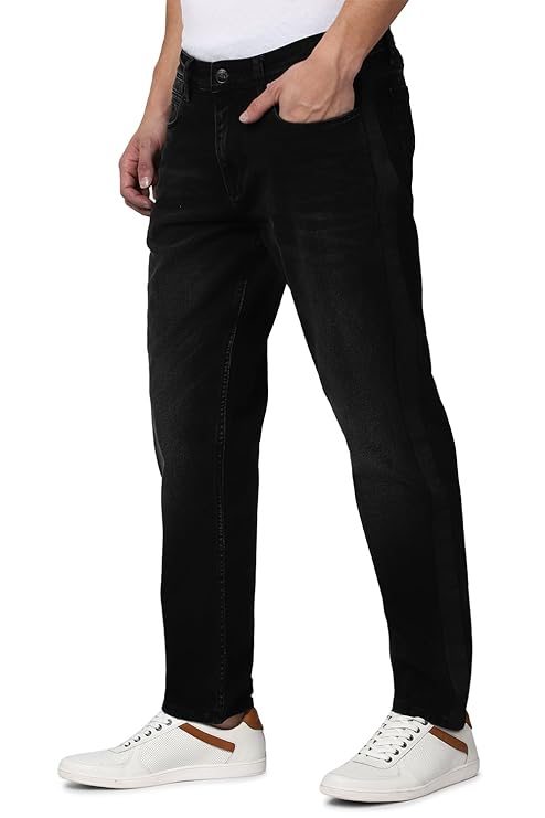 Peter England Men's Mid Rise Regular Fit Jeans (Black)
