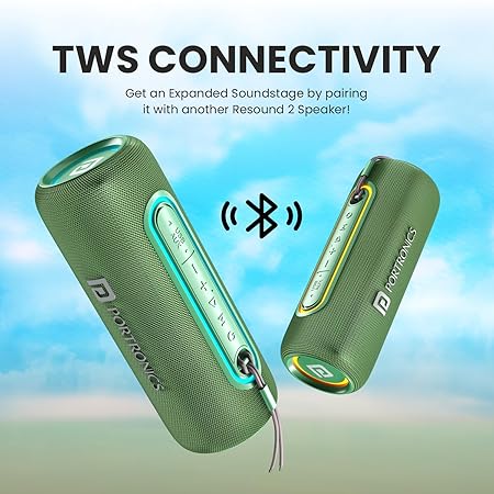 Portronics Resound 2 15W HD Sound Portable Wireless Bluetooth Speaker, in-Built Mic, RGB Lights, TWS Connectivity, Bluetooth v5.3 (4 color options)