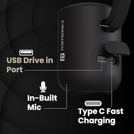 Portronics Soundpot 20W Wireless Bluetooth Portable Speaker with 360° immersive Sound, Upto 6 Hours Playtime (Black)