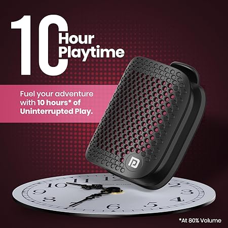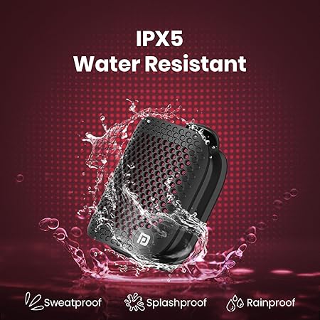 Portronics Talk Five 3W Wearable Bluetooth Speaker with Mic, Spring Clip-On, Upto 10Hours Playtime, IPX5 Water/Dust Resistant (Black)