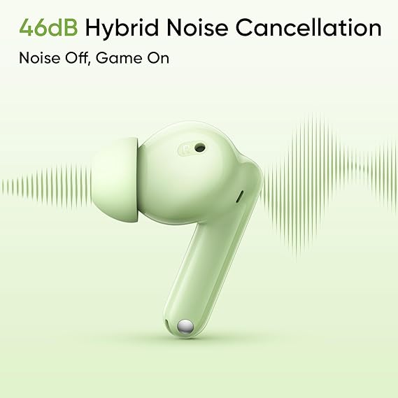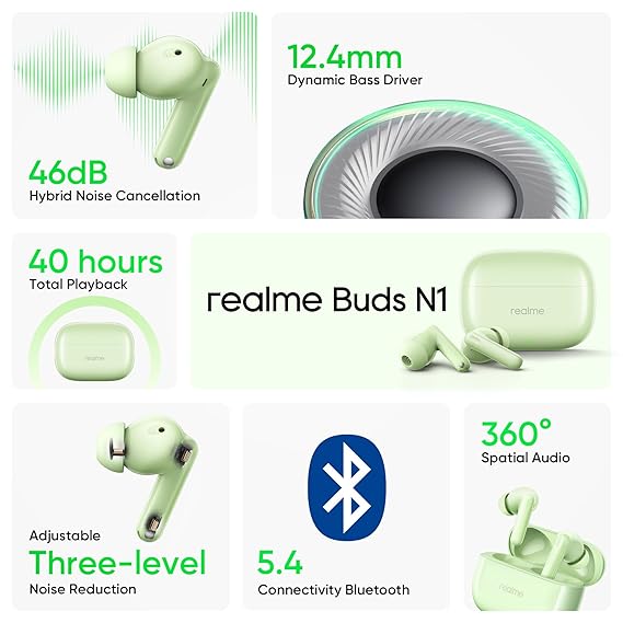 realme Buds N1 True Wireless in-Ear Earbuds with 46dB Hybrid ANC, 360° Spatial Audio, 12.4mm Dynamic Bass Driver, Upto 40Hrs Battery and Fast Charging (Energizing Green)