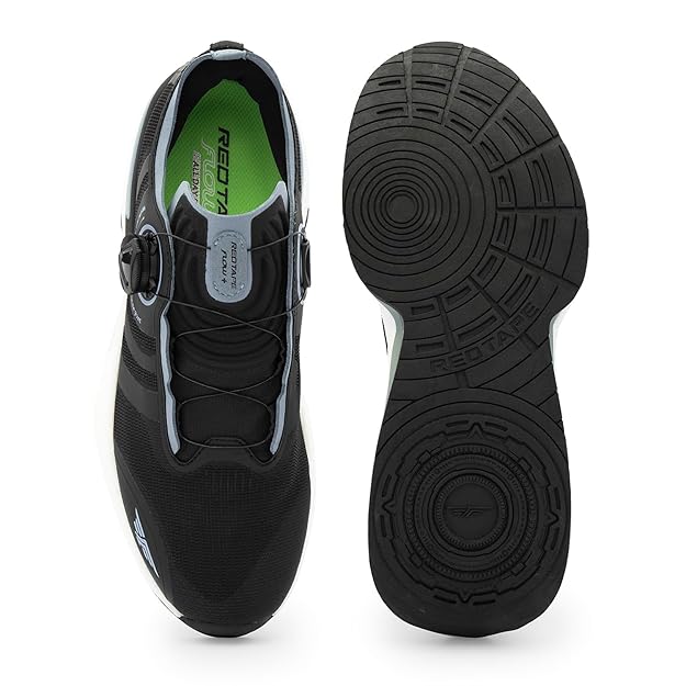 Red Tape Dial Lace ETPU Athleisure Shoes for Men | Cultured Round-Toe Shape & Cushioning Technology (Black)