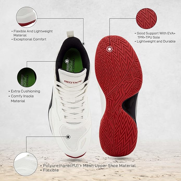 Red Tape Men’s Basketball-Style Shoes for Bold Streetwear Looks (White/Red)