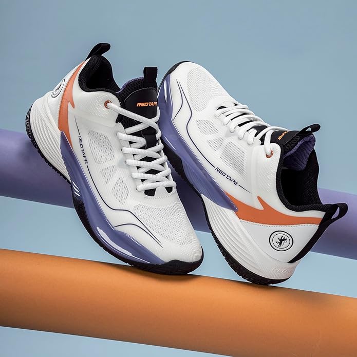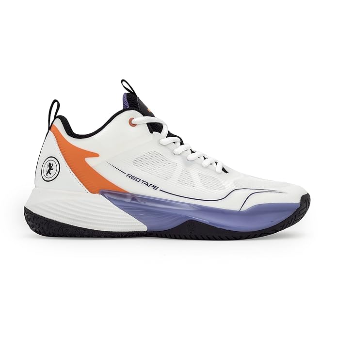 Red Tape Men's Basketball Shoes | Built for Agility and Court Comfort (White/Orange)